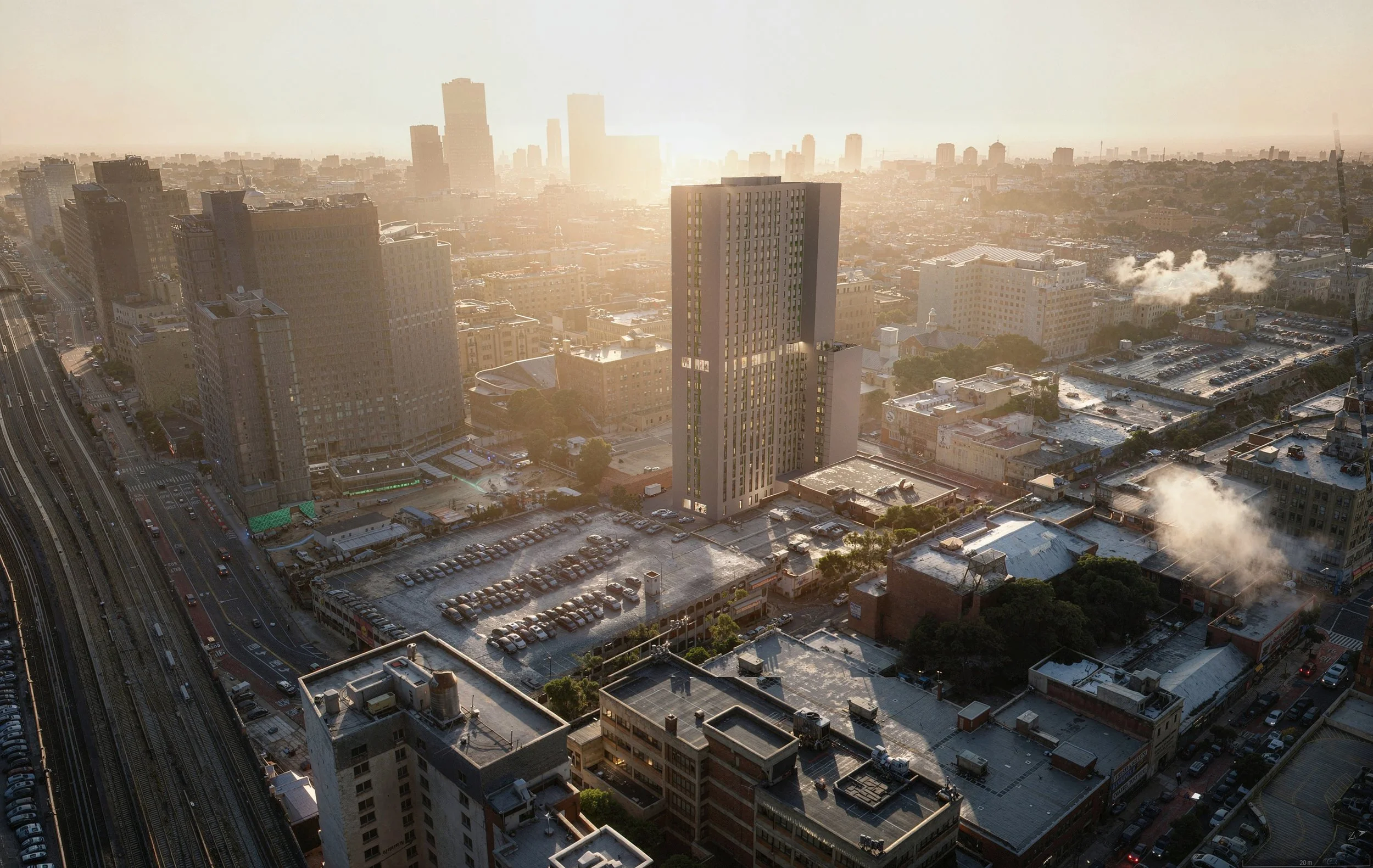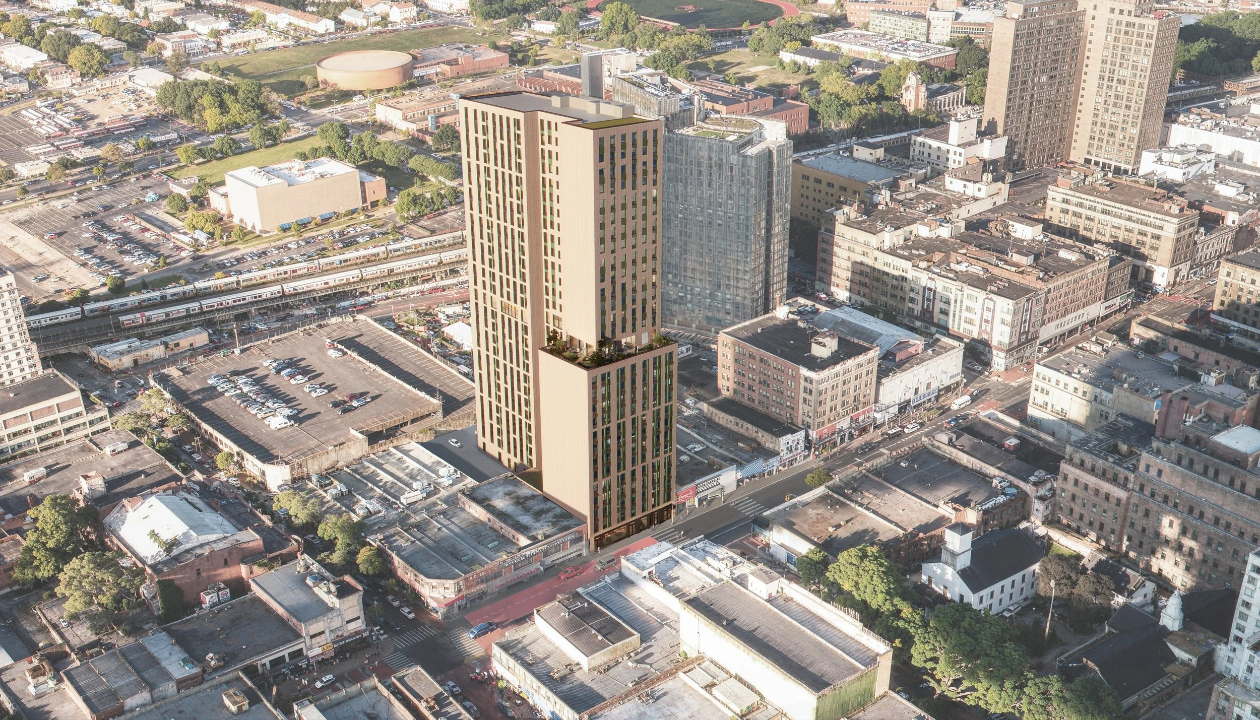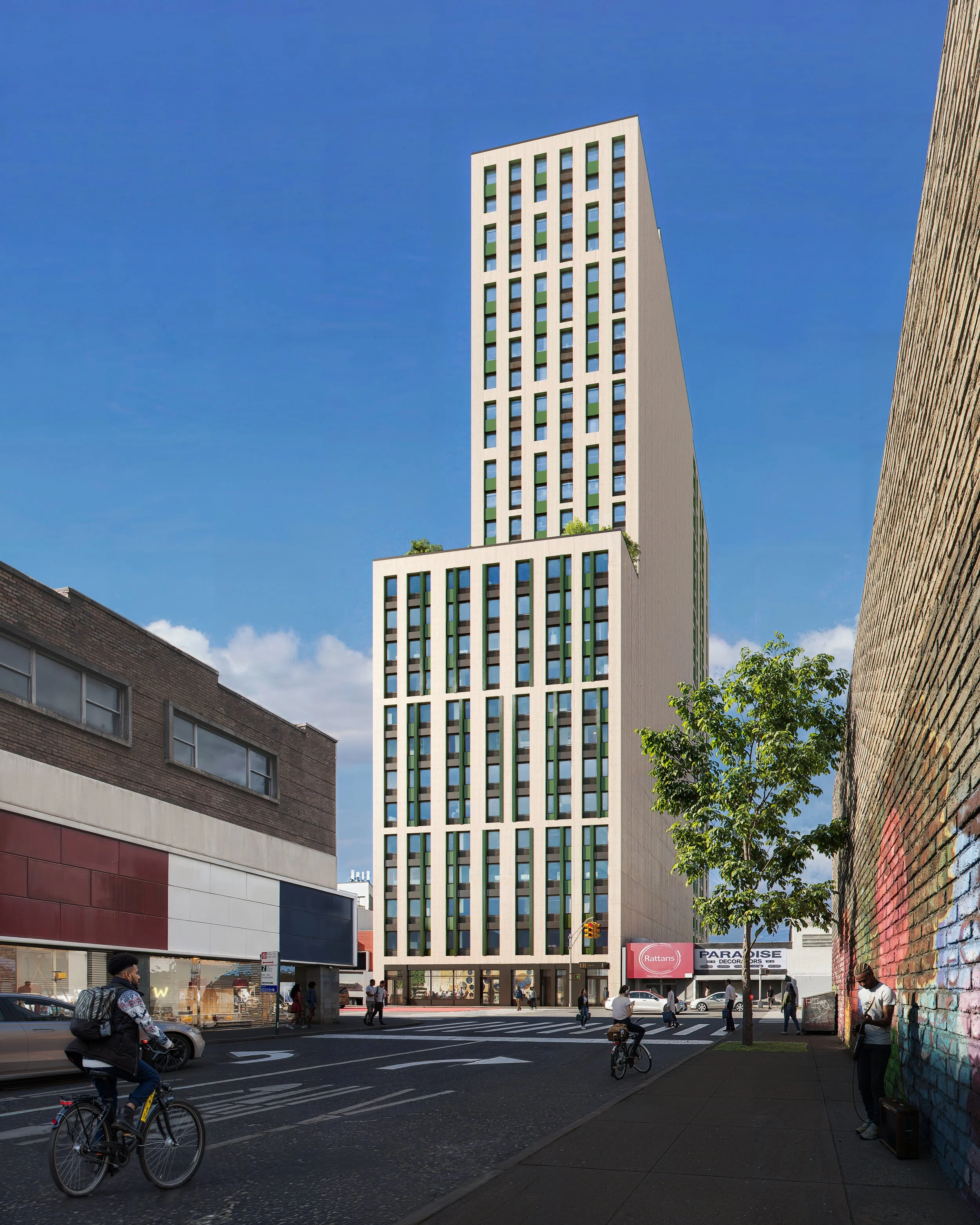 Twenty-Eight Story, 285-unit residential building with commercial space on the ground floor